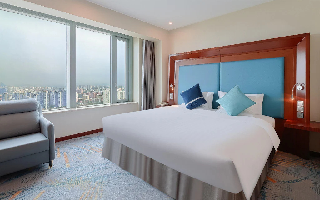 Отель хороший, но не без недостатков. Проживаем в данном отеле в настоящее время с друзьями двумя семьями в 4 номерах с детьми. Расположение отеля хорошее. Район спокойный, тихий. Метро в шаговой доступности. Не спеша пешком 10 минут. В здании отеля есть несколько ресторанов, кафе, в том числе такие как starbucks и subway. Есть продуктовый магазин и несколько торговых точек. Очень удобно. Персонал очень дружелюбный и приветливый. Вай фай стабильный. Номера в отеле не первой свежести, особенно у друзей на 32 этаже. Почти все розетки в обоих номерах не работают, кондиционер работает нестабильно. Ванная комната давно не обновлялась. У нас на 41м этаже ситуация порядком лучше. Уборка слабенькая. Очень пыльно в номерах, но этим грешат все отели, даже 5 звезд. Завтраки хорошие, выбор достаточный, но не меняется, изо дня в день одно и то же. За несколько дней уже всё надоело. Плюс в завтраках, это расположение ресторана - 50й этаж во вращающемся помещении со стеклянными окнами. Очень нравится вид из окон номеров. Немного расстроило то, что не поздравили именинника. Совершенно никак, даже открыткой. Впервые такое встретили. В целом, отель хороший. Рекомендую для проживания, но не более недели.